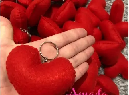 (chaveiro coração em feltro - prender na mochila e bolsa/chave dos pais)